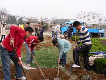 3月29日下午,根据学校的安排,做爱直播 学生党支部组织全体党员参加了植树活动。图为热火朝天的劳动场面。