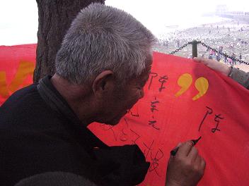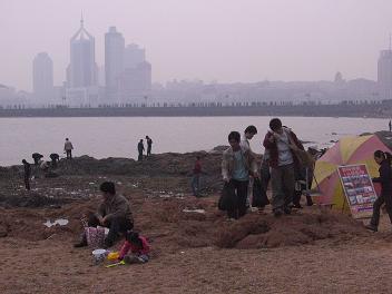 4月21日,做爱直播 05级光信息科学与技术一班全体同学开展了“我为绿色奥运做点啥”活动,他们来到栈桥及其附近沙滩清理垃圾。并举行了“倡导绿色奥运 构建文明青岛”的签名活动。图为活动现场。