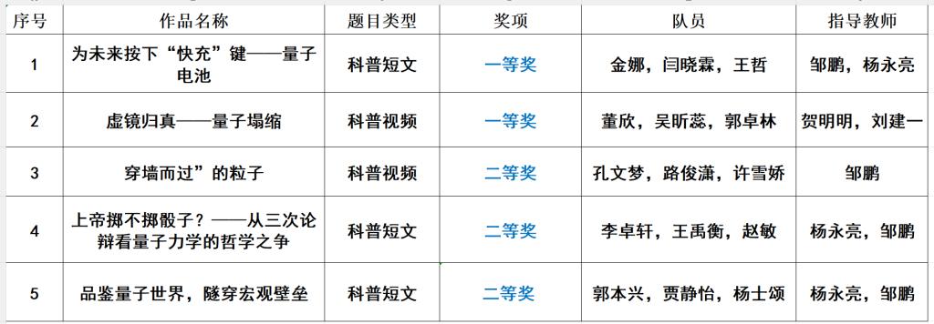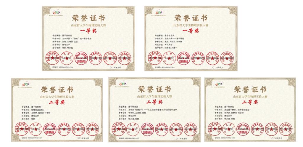 在2025年量子信息竞赛获一等奖2项、二等奖3项