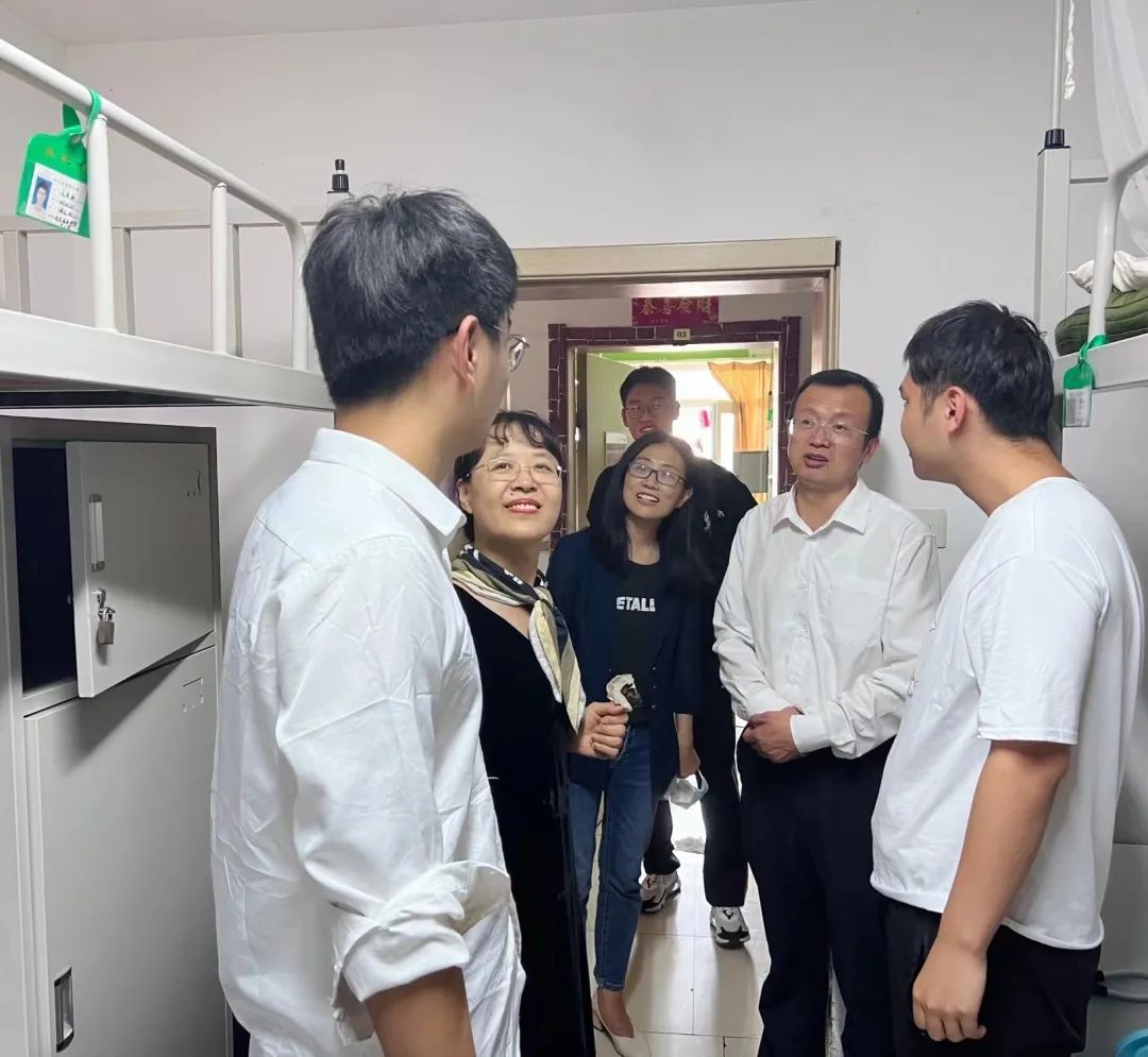 党委书记郝伟、院长滕冰、党委副书记董永红以及各年级辅导员一同前往毕业班宿舍进行寝室走访活动,了解毕业生思想及就业动态,温情话别2022届毕业生。